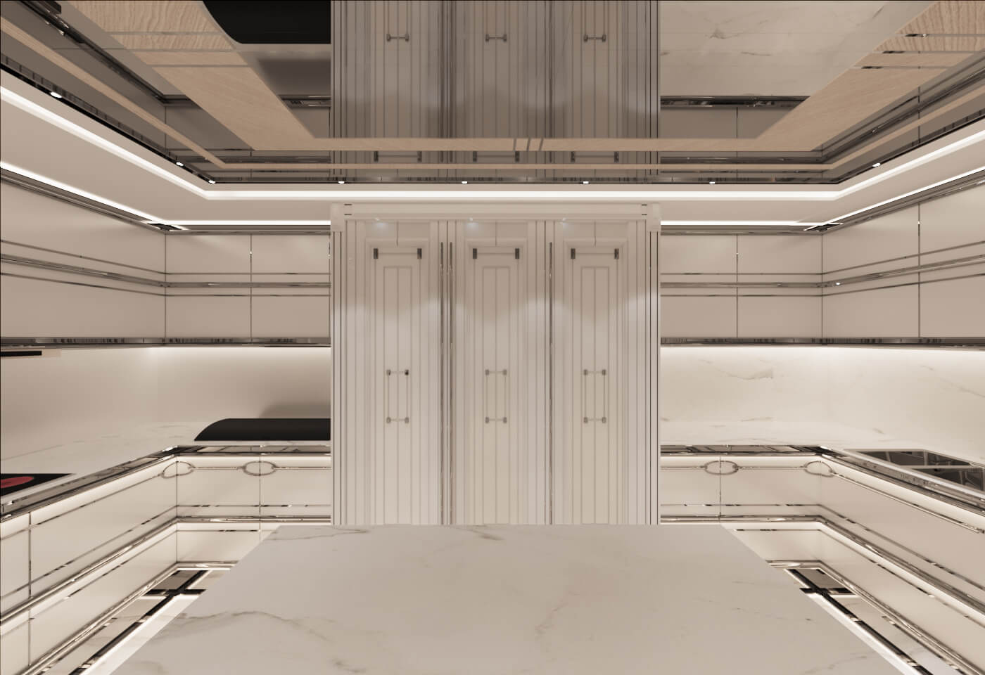 Domenika is a beautiful and elegant ship of 37 meters with a high superstructure on three decks. The antenna system of communication and navigation devices on top of the ship are the first hint of its power. We follow the ship with the jetty from the stern to the bow. Looking up at the bow – and the first feature. An imposing statue of a dolphin shines on top of the fence. In that beautiful jump of his. We are always delighted by the appearance of this irresistible charmer of the sea. Especially when he playfully follows the prow of the ship with his slender hull, wise eye, mischievous smile and jump. And this dolphin here on the prova irresistibly evokes just such memories. And this one follows the bow, “pulling” the ship towards the open sea, towards new seas and distant shores.